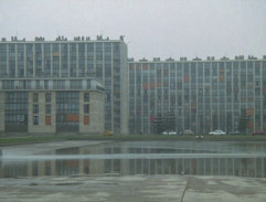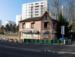 Le "magasin" est toujours debout, bien que dans un état plutôt appauvri. Mais l'état de la photo date du printemps 2016, les barrières auront certainement été enlevées à ce jour, peut-être que la maison elle-même n'a pas été enlevée au cours de ces 4 années. Il y a probablement eu un restaurant ou une sorte de bistro ici au fil du temps. Les préfabriqués et les cheminées de la centrale de chauffage du domaine sont de bons éléments d'identification du site. Quoi qu'il en soit, il n'y a pas de grande Euromarche de l'autre côté de la rue, devant la maison, et il n'y a pas de place pour en avoir une :-)
