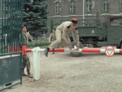 Le sergent Bellec voit un camion écrasé contre le mur de la prison et des bidasses dans la rue. Eux, ils ne répondent pas à son appel à retourner immédiatement en prison, alors il saute par-dessus la barrière et court après eux.